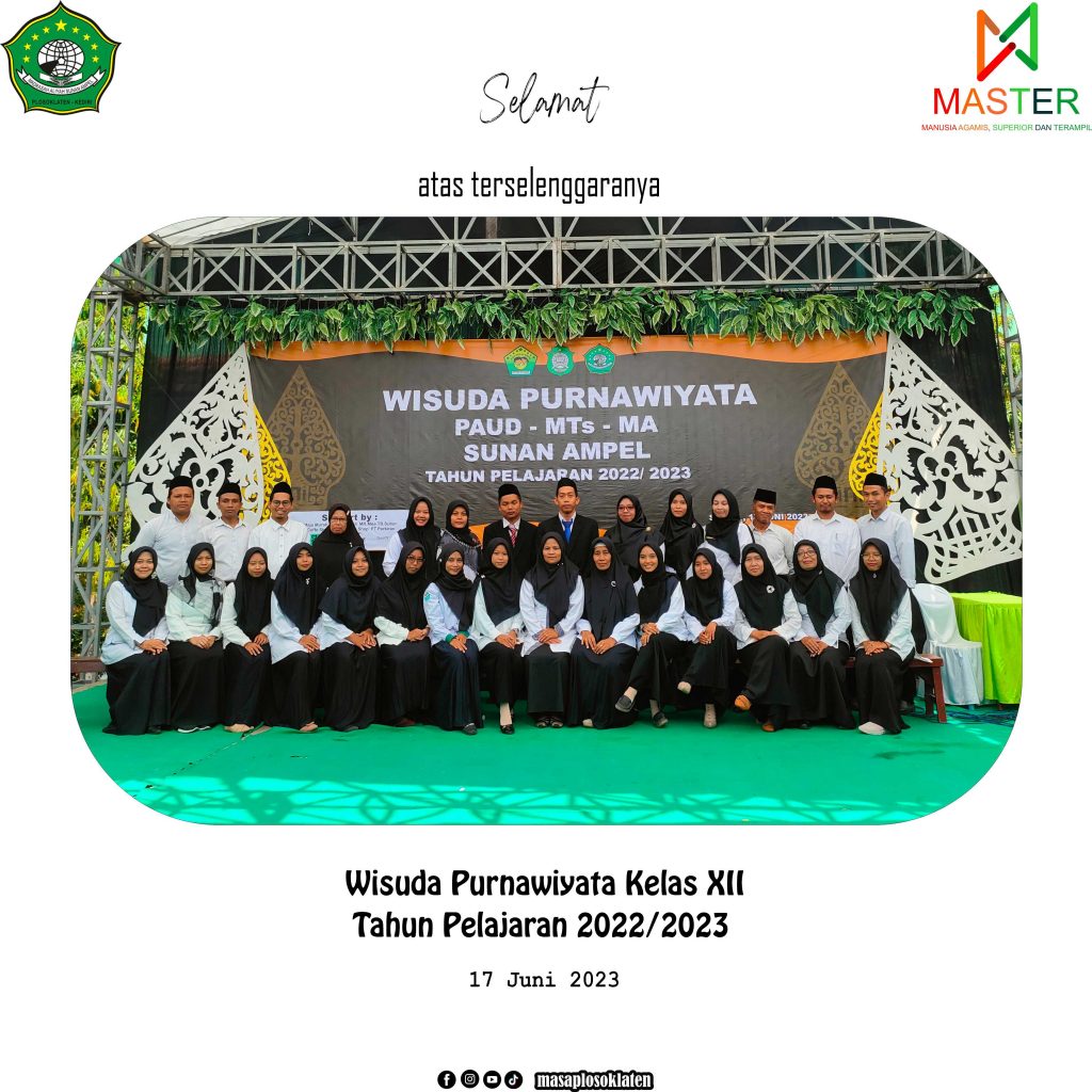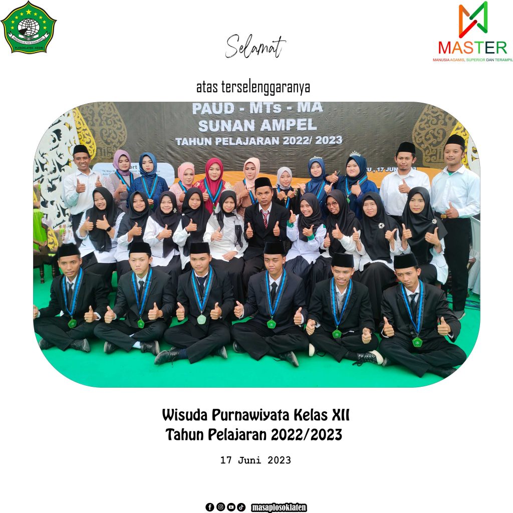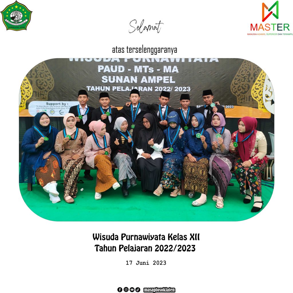 Wisuda oleh siswa – siswi MA Sunan AmpelAlhamdulillah kegiatan Wisuda siswa – siswi MA Sunan Ampel (MASA) Plosoklaten pada tanggal 17 Juni 2023 berjalan dengan baik dan lancar.
